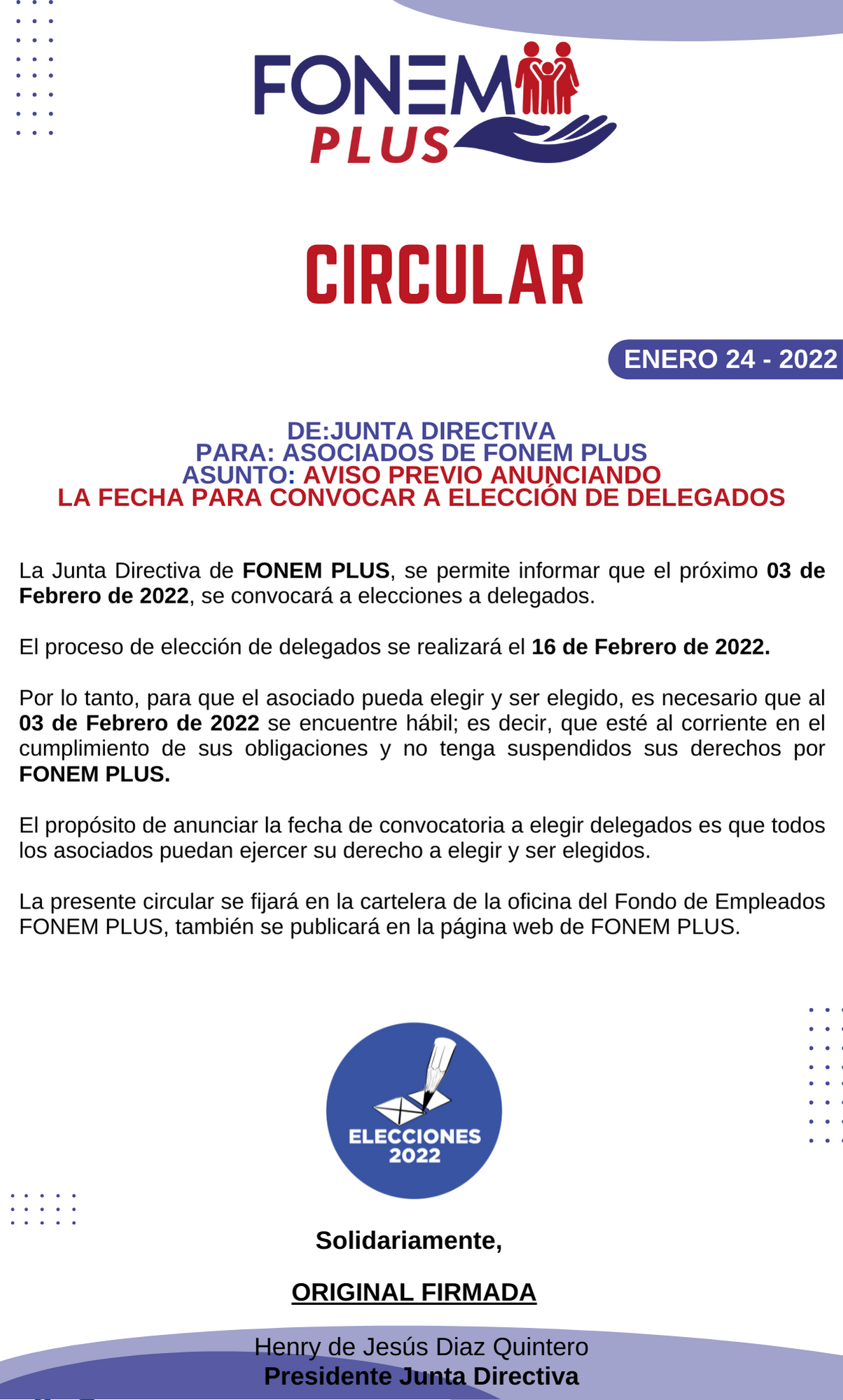 Apreciado asociado le compartimos la información con respecto a la convocatoria para aspirantes a delegados de FONEM PLUS.