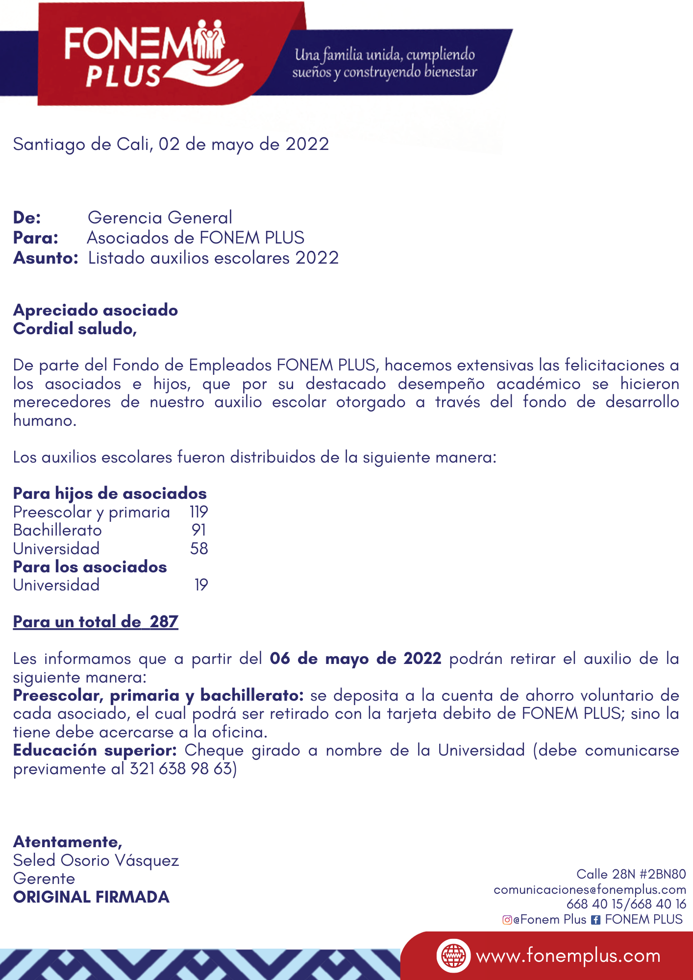 Apreciado Asociado le compartimos el listado de los Auxilios Escolares aprobados para el año 2022.