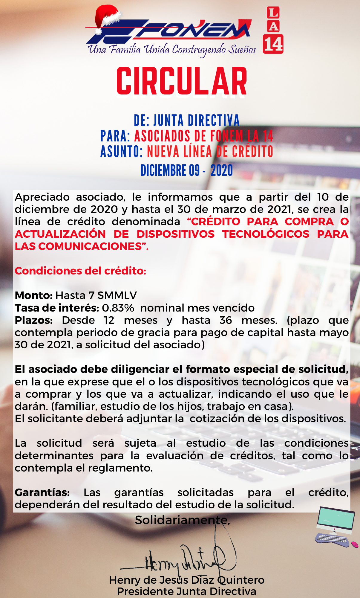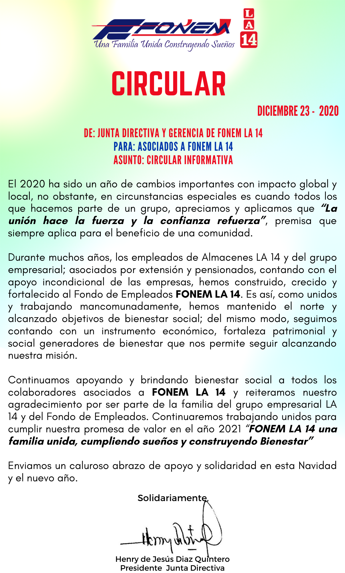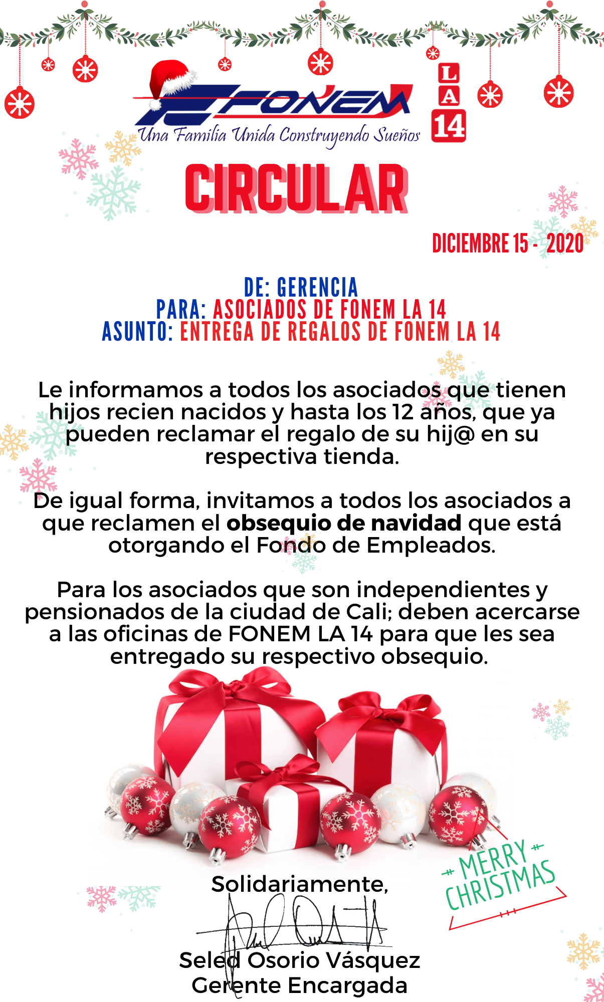 Apreciado asociado le informamos la dinámica para la entrega de los regalos que otorga FONEM LA 14 para el año 2020.