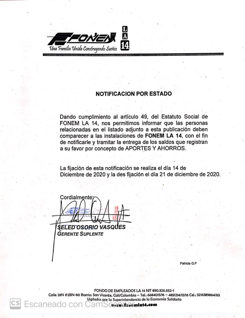 A continuación le adjuntamos el listado completo con las personas solicitadas en las oficinas de FONEM LA 14. CLICK AQUÍ