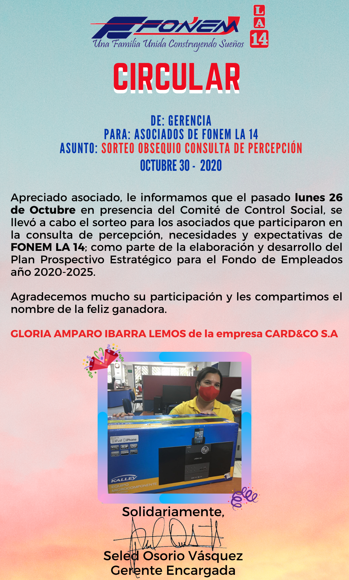 Apreciado Asociado, le compartimos esta información de su interés.