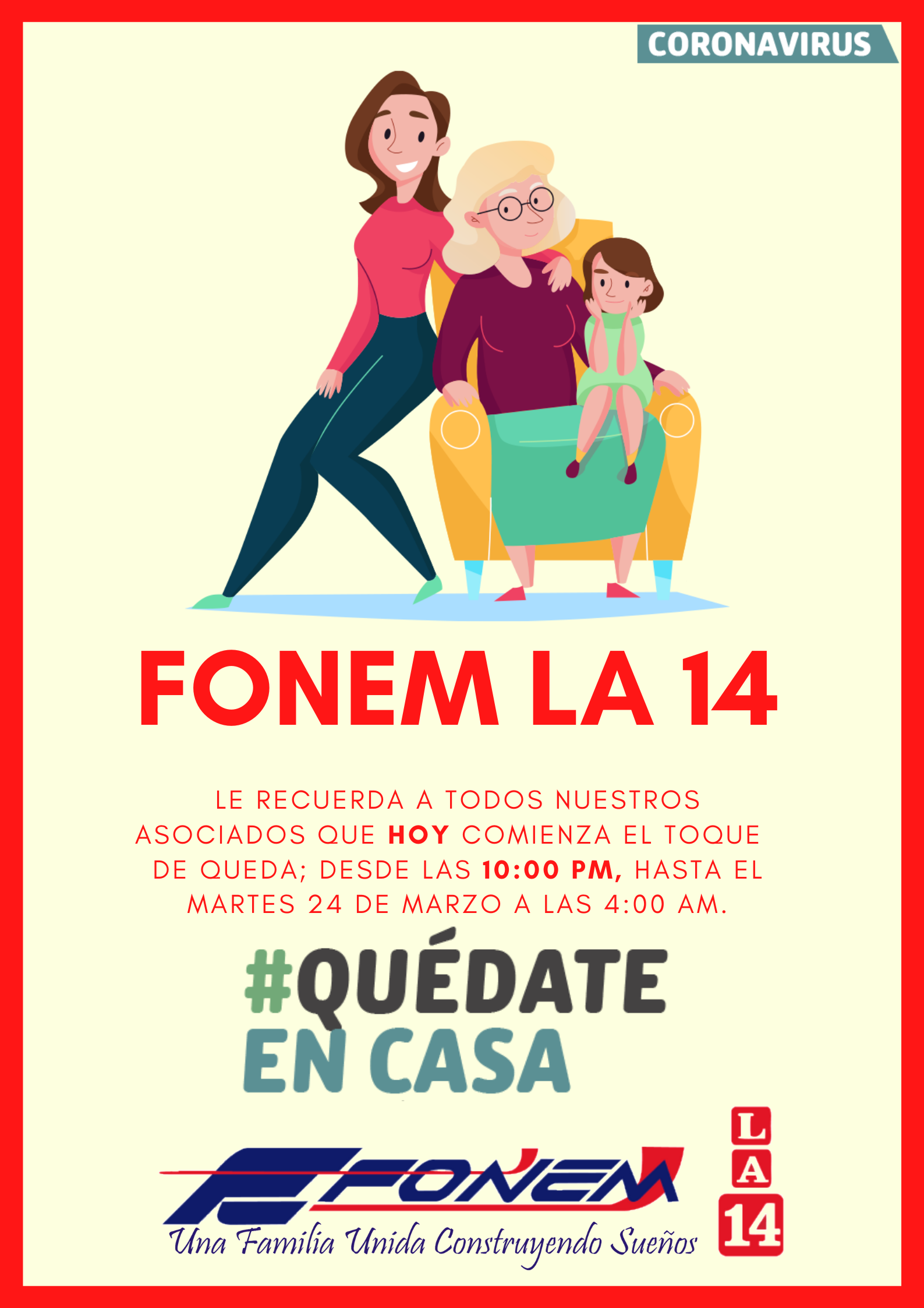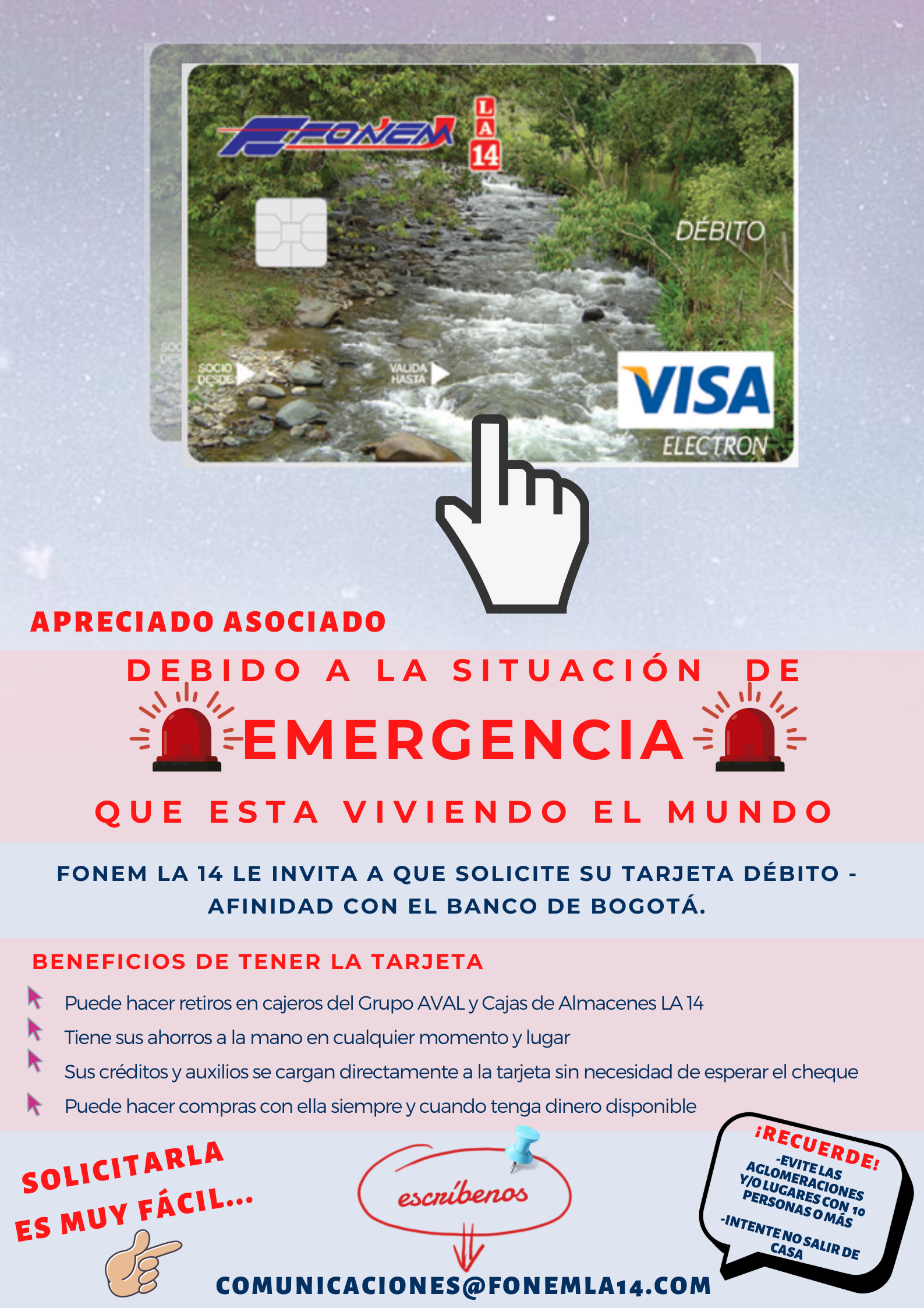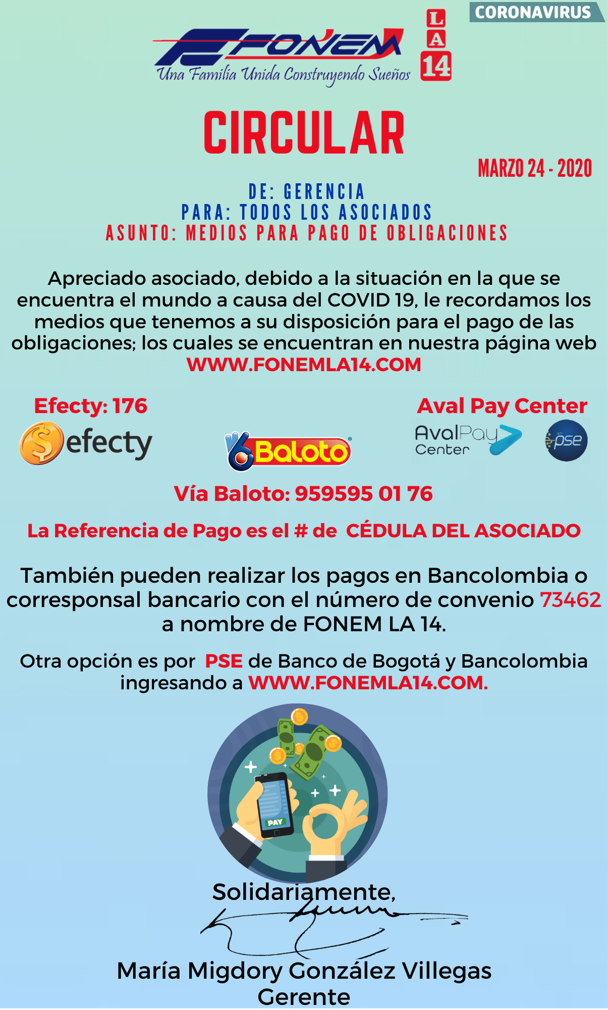 Apreciado asociado le compartimos el Comunicado acerca de las medidas tomadas por la Junta Directiva para la prestación de servicios en FONEM LA 14.