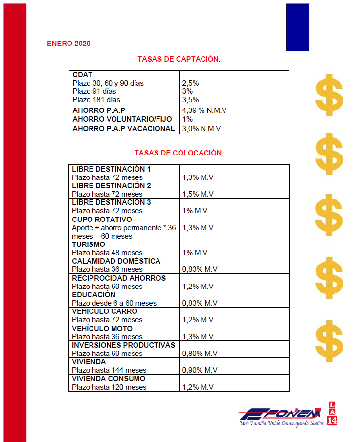 Apreciado Asociado, le informamos los descuentos que se van a realizar en el mes de Enero del presente año.