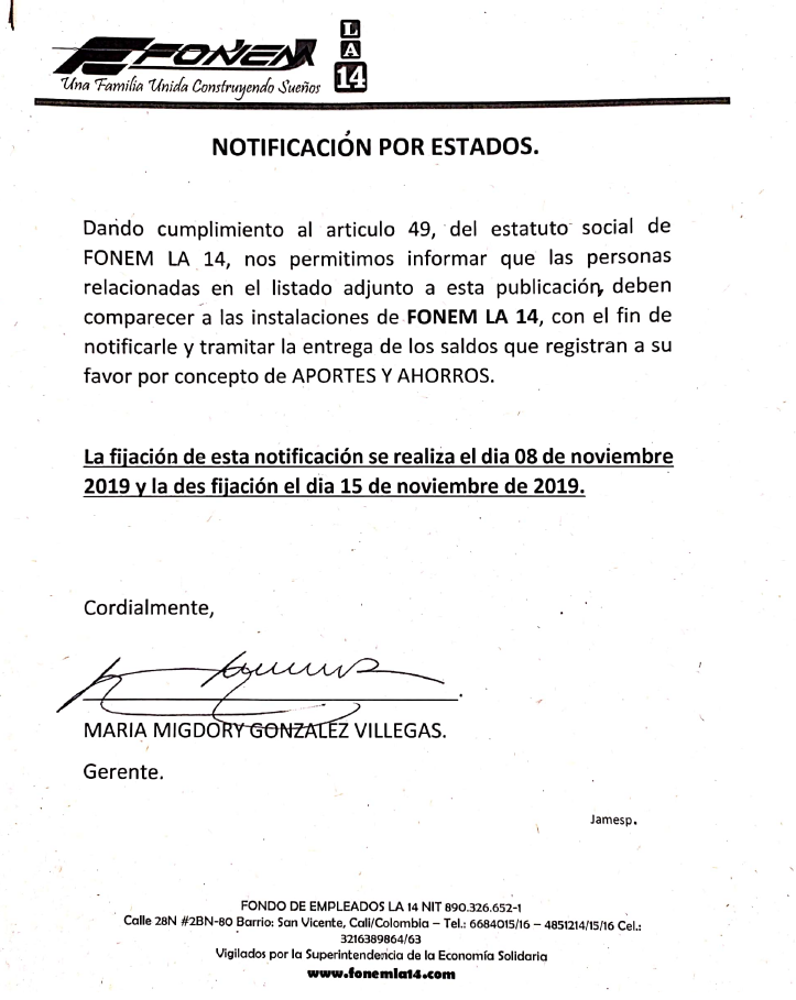 A continuación le adjuntamos el listado completo con las personas solicitadas en las oficinas de FONEM LA 14. CLICK AQUÍ