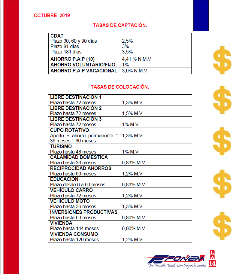 TASAS DE CAPTACIÓN Y COLOCACIÓN - DICIEMBRE