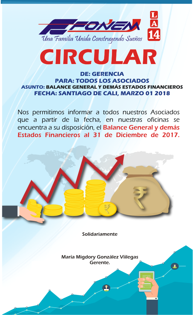 Estimado Asociado, entérese dando Click AQUÍ, sobre la Circular informativa del Balance General y demás estados Financieros de FONEM LA 14.