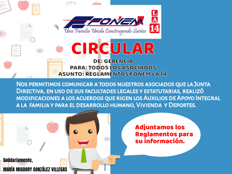 Reglamento del Auxilio de Apoyo integral a la familia y para el Desarrollo Humano Click AQUÍ. Para el Reglamento de Vivienda AQUÍ y para el Reglamento de Deporte, Recreación y Cultura Click AQUÍ.